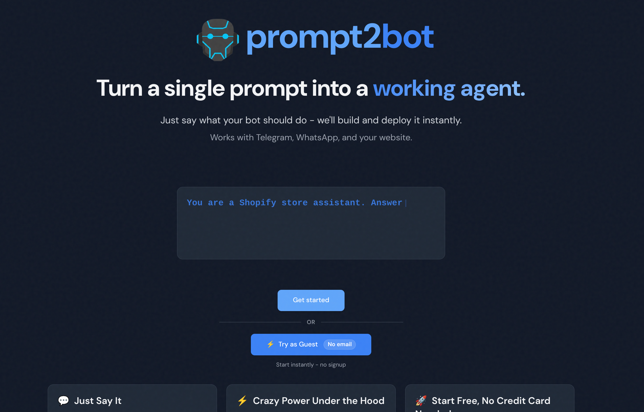דף הבית » כלי בינה מלאכותית » עוזר אישי » Prompt2Bot